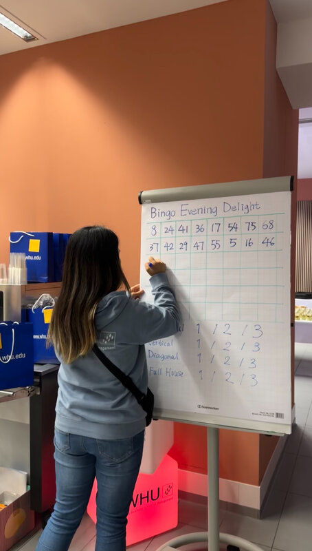 Unter dem Motto „Bingo Evening Delight“ kamen etwa 130 Gäste am 19. November zu einem gemütlichen gemeinsamen Abend in der neuen Mensa der WHU (D-Gebäude) zusammen. Unter ihnen waren Bürger:innen Vallendars sowie Studierende und Mitarbeitende der WHU – Otto Beisheim School of Management.