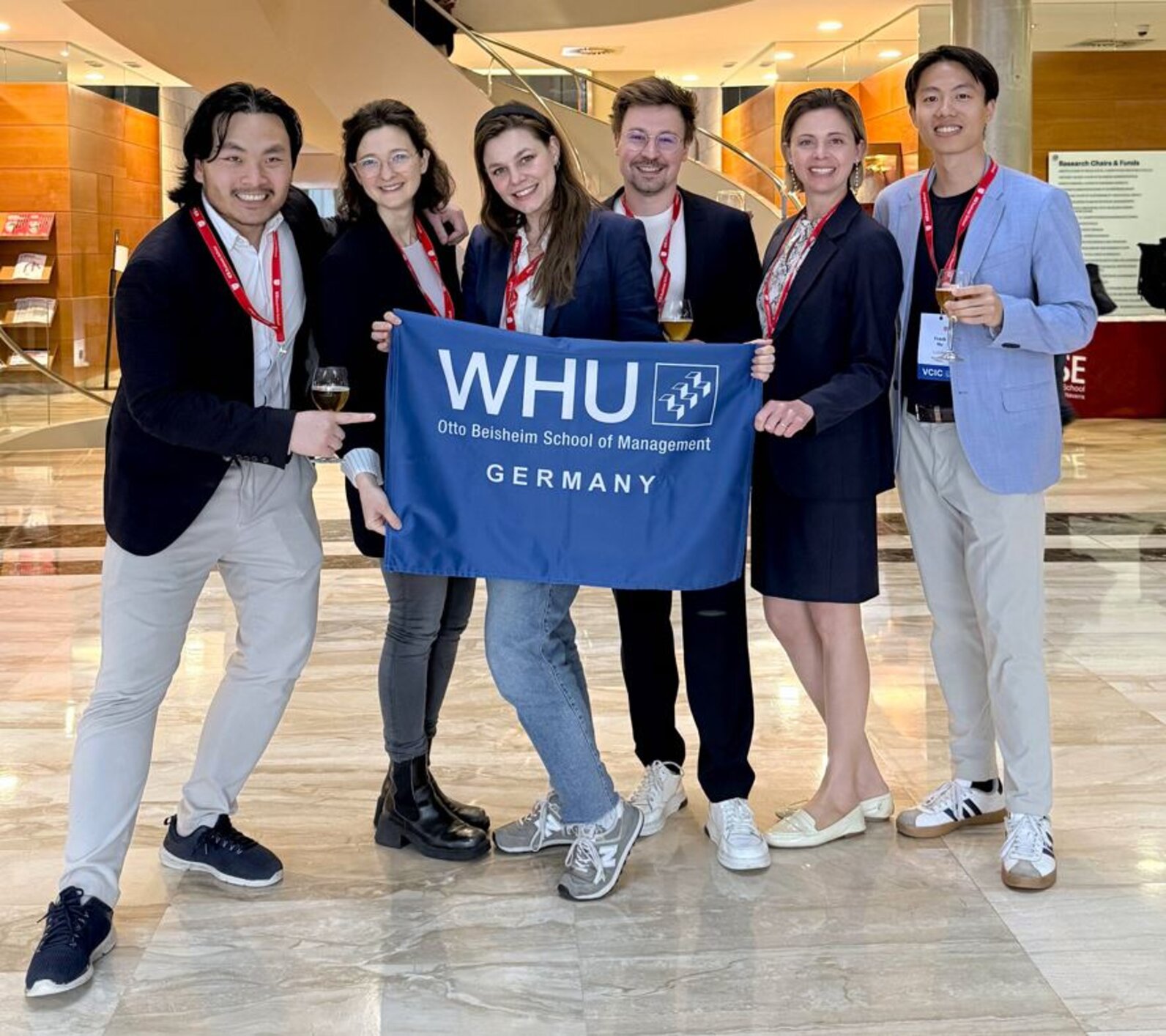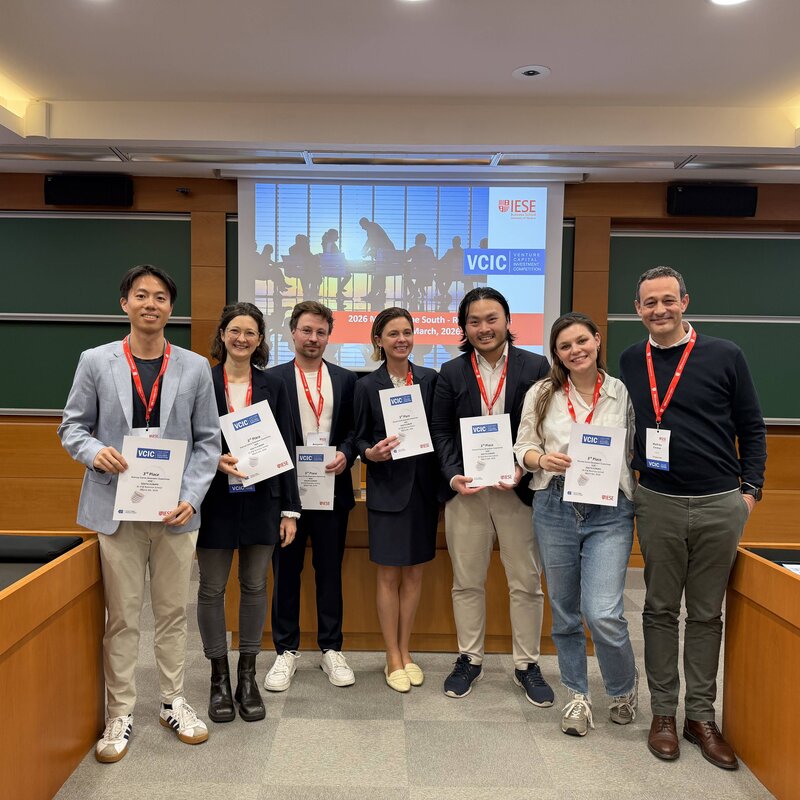 Verhandlungen mit Gründenden, Wertermittlung von Start-ups und eigenständige Investitionsentscheidungen: Bei der Venture Capital Investment Competition (VCIC) kommen Studierende so nah an den Arbeitsalltag eines Wagniskapital-Investors heran wie nie zuvor. Das sechsköpfige Team der WHU – Otto Beisheim School of Management bestehend aus Lisa Emme (OMBA 2027), Caterina Guerra (PTMBA 2026), Camilla Leske (FTMBA 2026), Benjamin Schweizer (OMBA 2027), Duke Tam (OMBA 2027) und Frank Wu (FTMBA 2026) hat in diesem Jahr im März an der Simulation teilgenommen – und den dritten Platz beim VCIC Europe South 2026 Finale in Barcelona erreicht. Damit ließ das Team der WHU zahlreiche andere Business Schools hinter sich. „Wir sind besonders stolz darauf, den dritten Platz belegt zu haben, weil wir als vergleichsweise spontan zusammengestelltes Team angetreten sind“, sagte Duke Tam, der die WHU zusammen mit seinen Kommilitonen vertrat. „Andere Teams haben diese Challenge teilweise als Wahlkurs belegt und dafür auch ECTS-Punkte erhalten. Für uns war die größte Herausforderung, dass wir den Wettbewerb in dieser Form nicht kannten. Daher sind wir mit dem Ergebnis sehr zufrieden.“