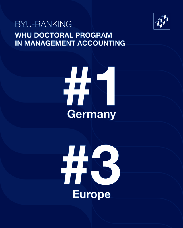 Das Promotionsprogramm im Bereich Management Accounting der WHU – Otto Beisheim School of Management belegt im aktuellen Brigham Young University Accounting Research Ranking (BYU) Platz 1 in Deutschland. Mit Blick auf Europa teilt sich die WHU gemeinsam mit dem Programm der Maastricht University School of Business and Economics Rang 3.