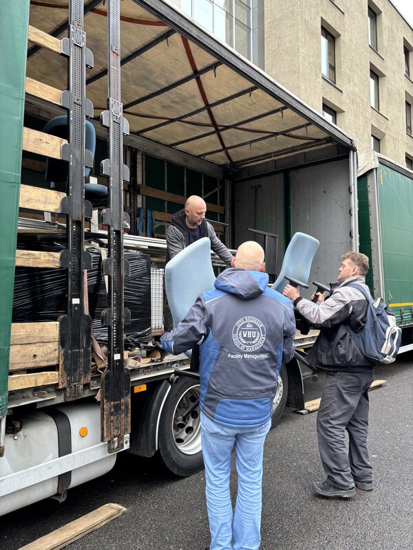 „Wir hatten vor einiger Zeit Kontakt zu der Deutsch-Ukrainischen Gesellschaft für Wirtschaft und Wissenschaft bezüglich einer möglichen Spende nicht mehr benötigter Büromöbel“, sagte Dr.Lars Beuth, Associate Director Campus Management Vallendar. „Wir wollen gerne helfen, wo es uns möglich ist, und durch die zunehmende Zerstörung von Gebäuden in der Ukraine werden eben auch Büromöbel dringend benötigt“.