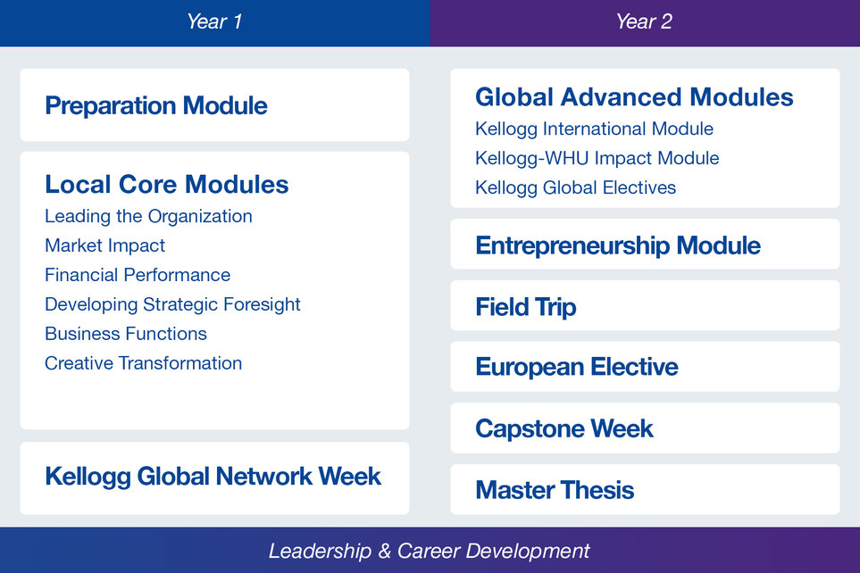 - Option A: Kellogg International Module, Kellogg-WHU Impact Module, and one Kellogg Global Elective