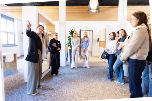The participants have traveled not only from Düsseldorf and the surrounding region, but also from cities such as Mainz, Essen, Dortmund, Kassel, and the Sauerland. Many are still undecided about their future career paths. That is precisely why the concept behind WHU’s Girls’ Day is intentionally broad: rather than focusing on specific career decisions, it aims to provide orientation—and to highlight opportunities. “What we want to convey today is that women and girls can become anything they want,” says Klaudia Wilde, organizer of WHU Girls’ Day and Director of Development & Relationship Management at WHU, in her opening remarks. The goal is for each participant to take away something personally meaningful. Accordingly, topics such as self-confidence, leadership, and navigating new technologies take center stage, complemented by personal insights into diverse career paths.